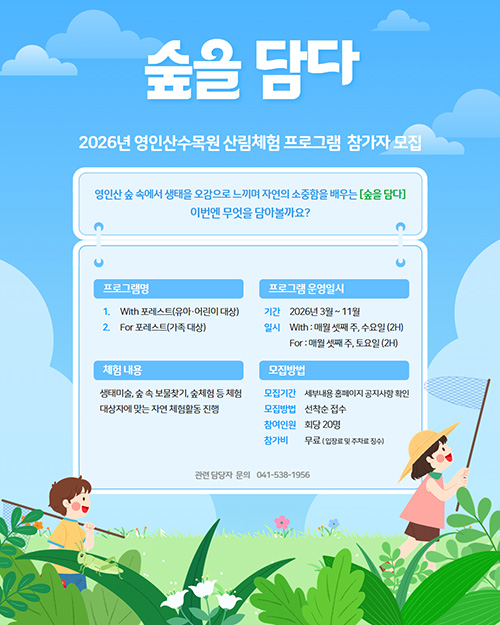 산, 나무, 물, 바위, 구름 등 자연을체험하는 산림문화의 현장학습장