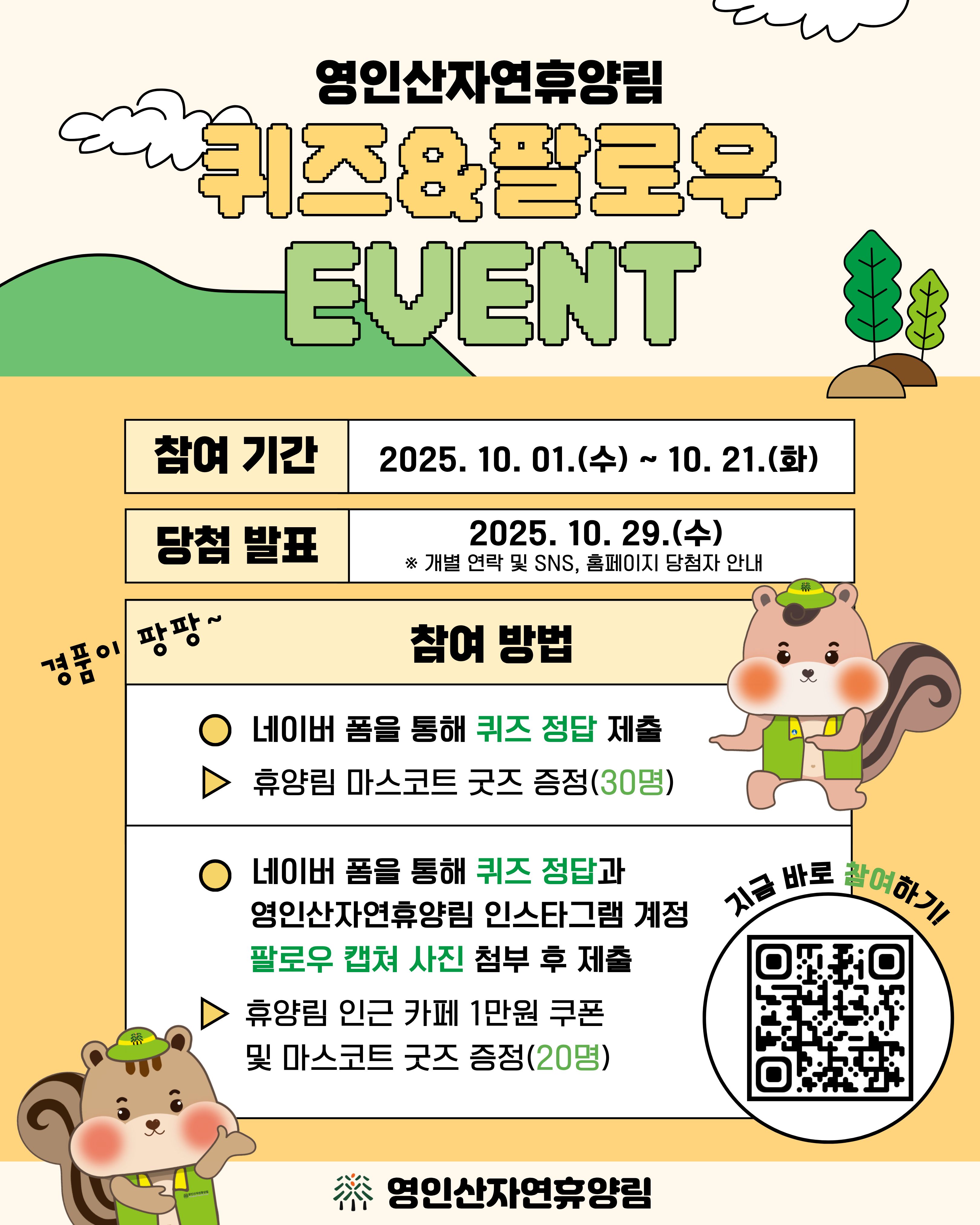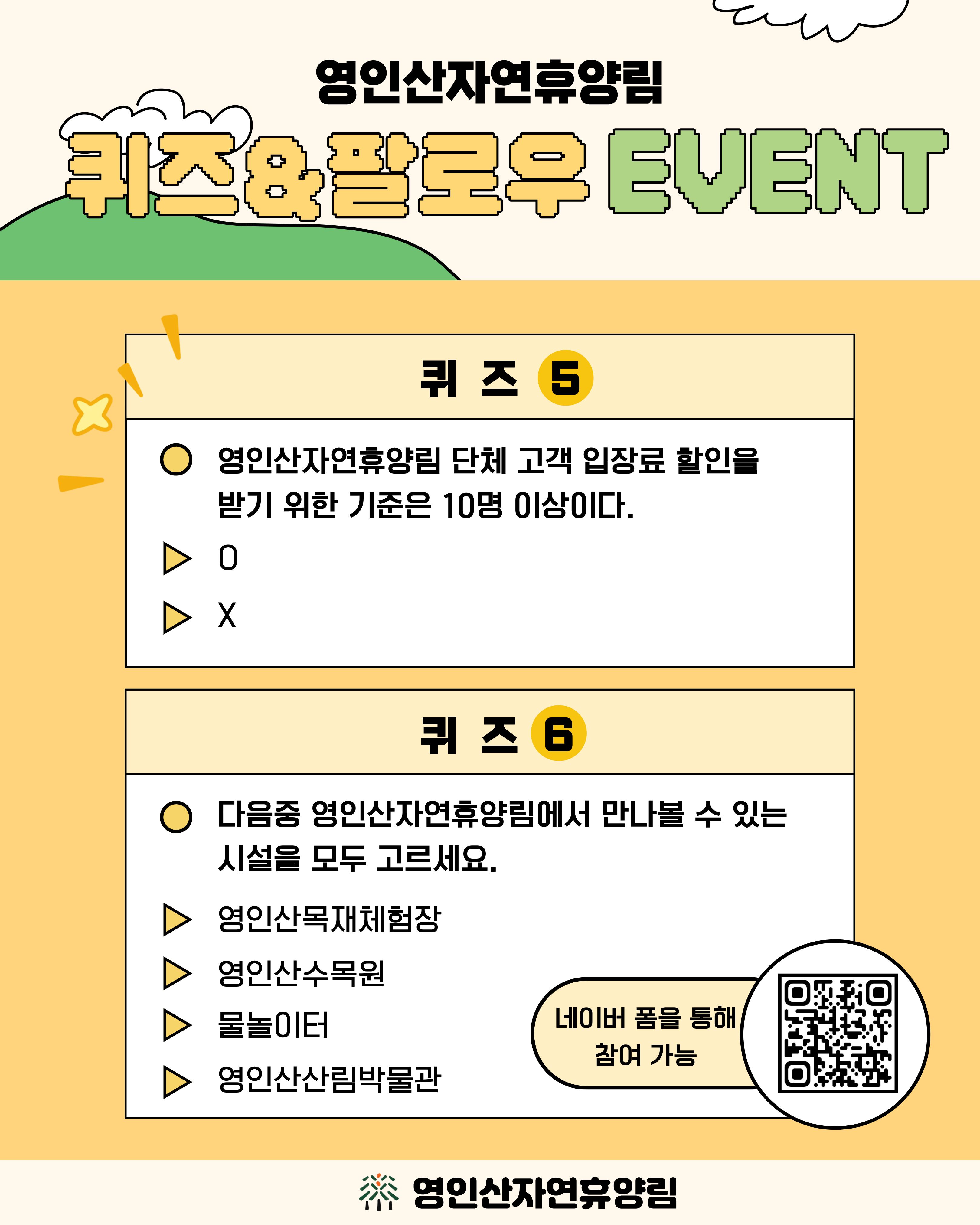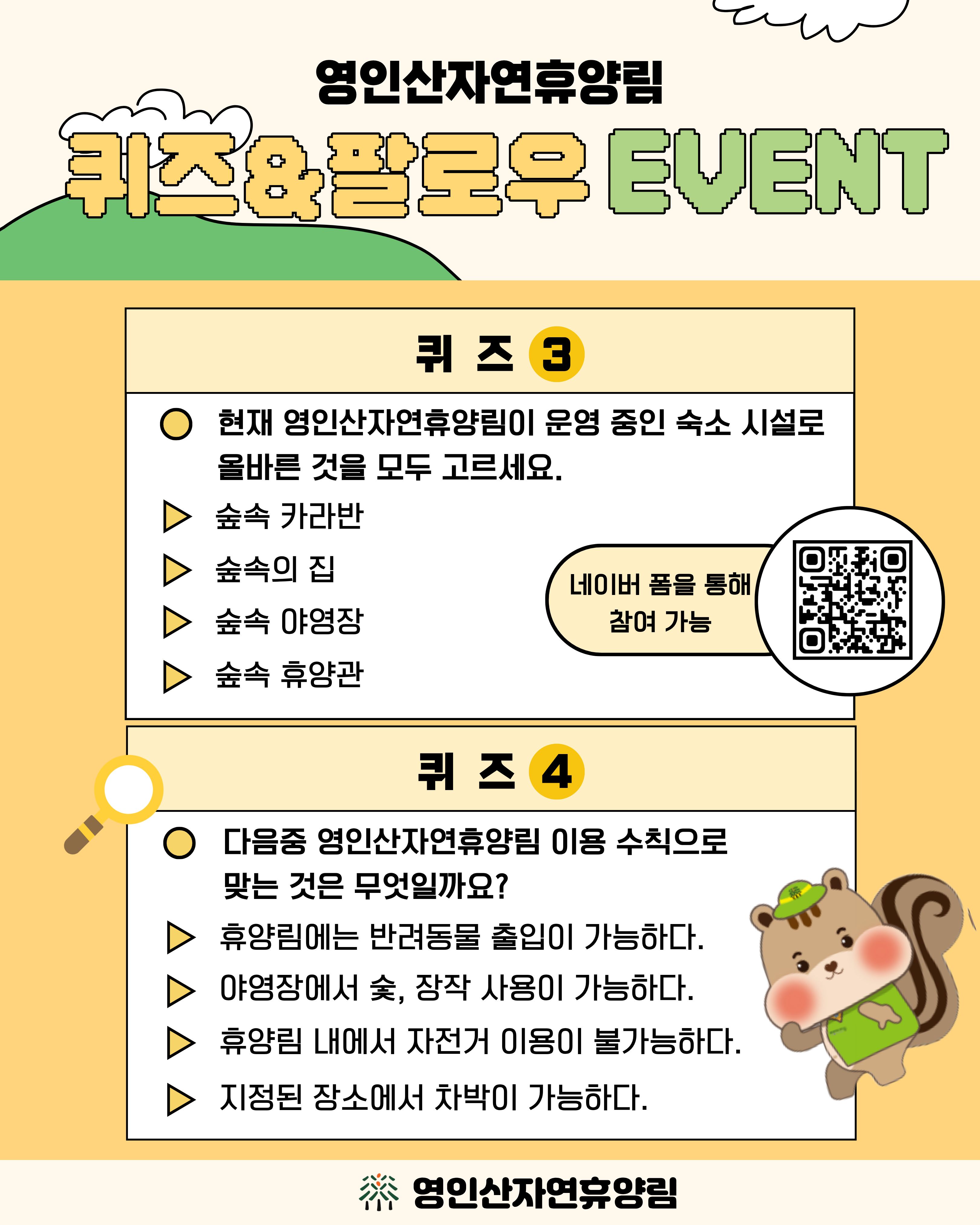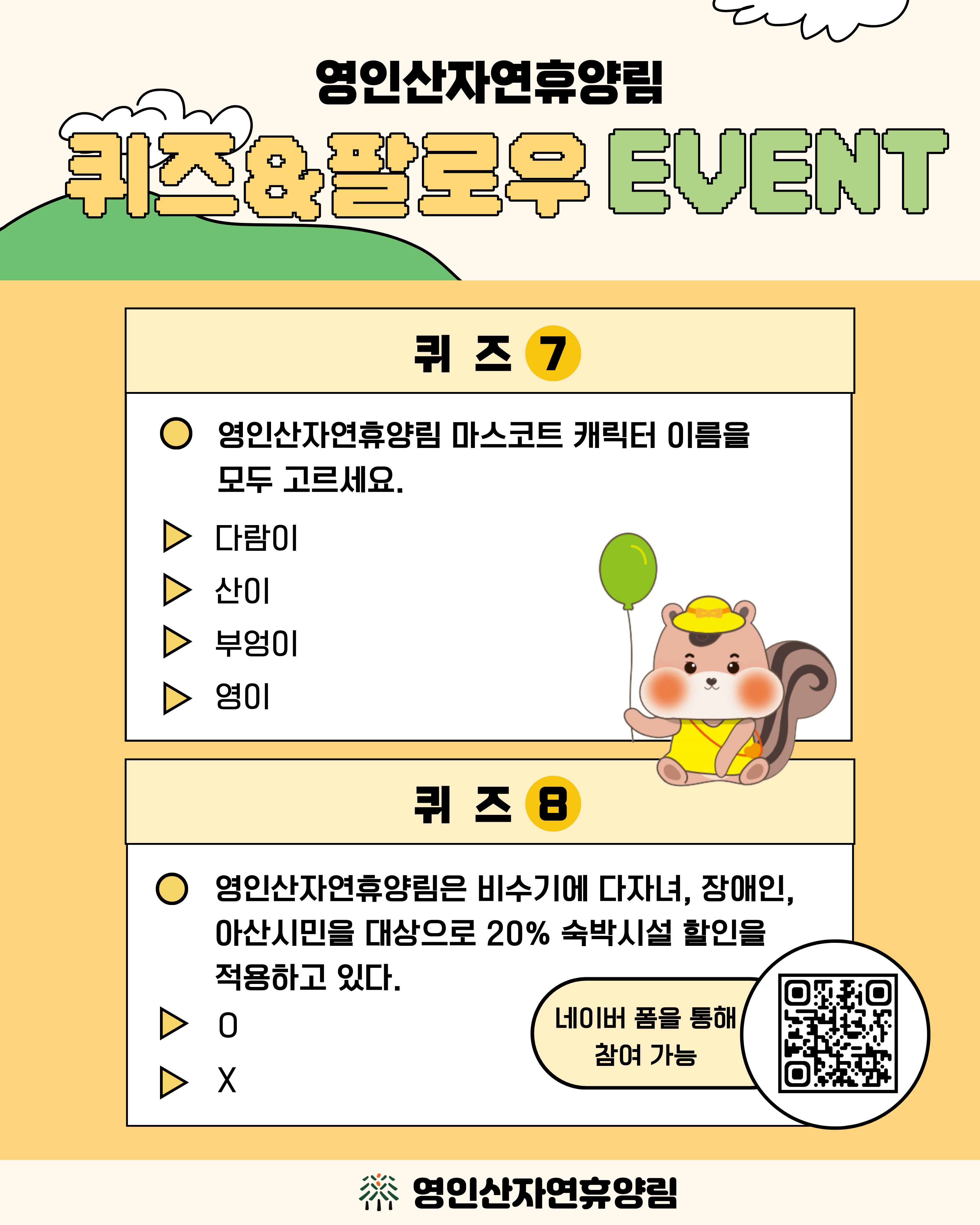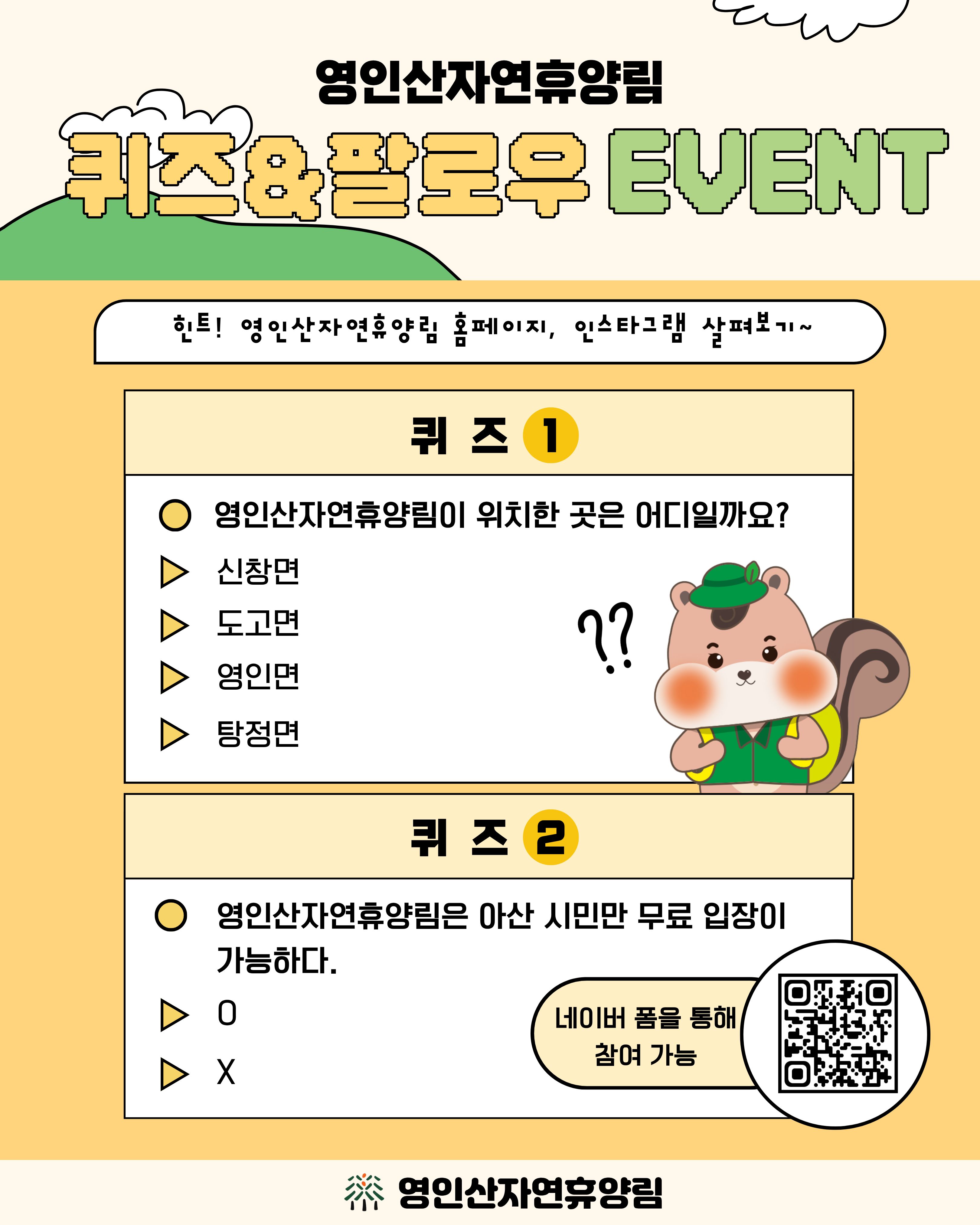 영인산자연휴양림 퀴즈&팔로우 이벤트 안내 조회수 : 274회